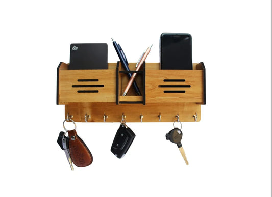 Wooden Mobile & Key Holder (Brown, Pack of 2)